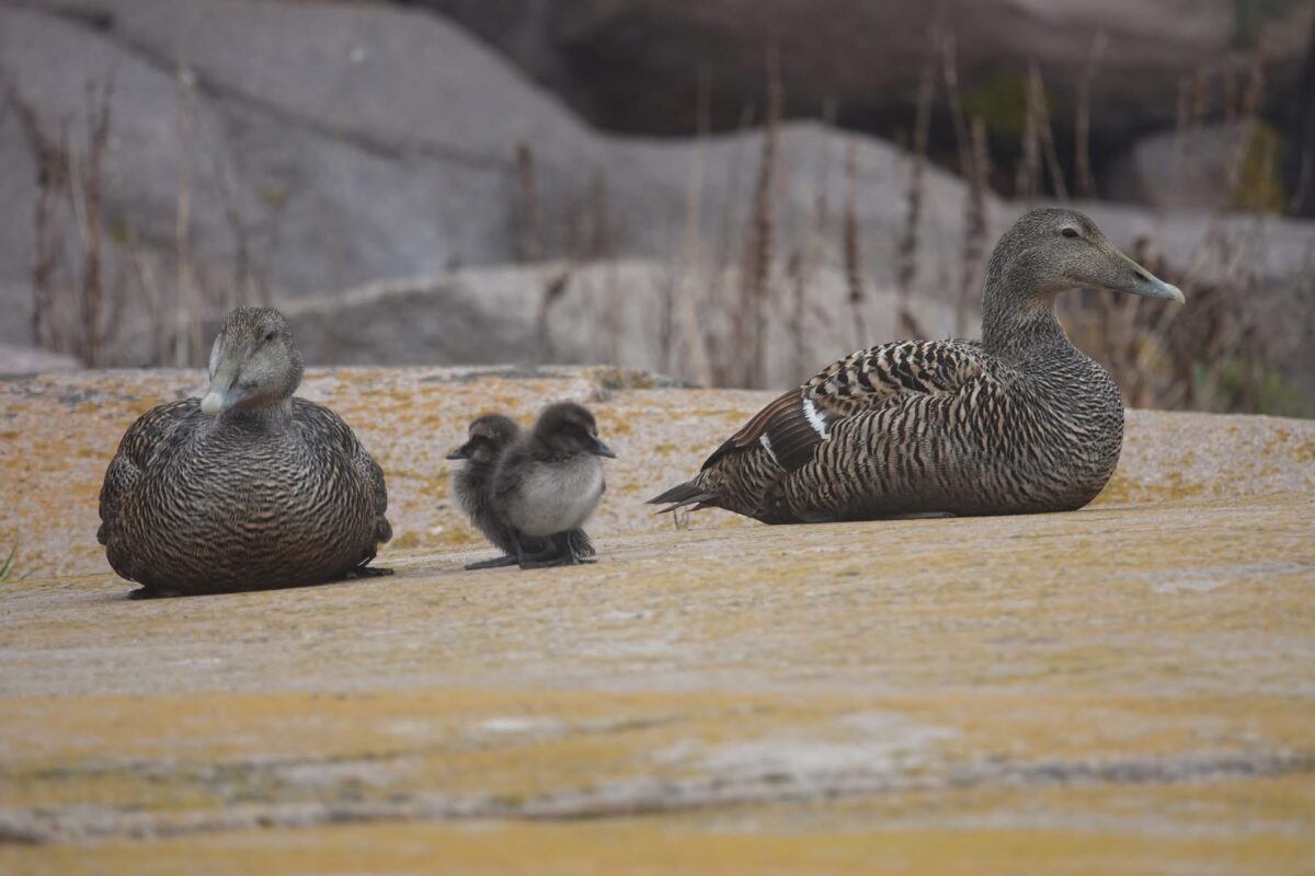 Kuva on otettu Bengtskärissä kesäkuun alussa 2025. Käyn sillä usein, nimenomaan alkukesästä. Silloin haahkoilla on osa poikasista jo kuoriutuneet, osa emoista vielä hautoo. Pesiä saaressa on yhteensä vuosittain 500 kpl. Lisääntymispaikka on niille turvallinen, koska merikotkat eivät tule niitä saalistamaan. Syy on se, että Bengtskärissä liikkuu sen verran paljon ihmisiä, ne pystyvät poissa. Ihmiset ja haahkat elävät muutaman viikon hyvin sopuisasti keskenään. Pelottomasti, keskellä upeaa merta