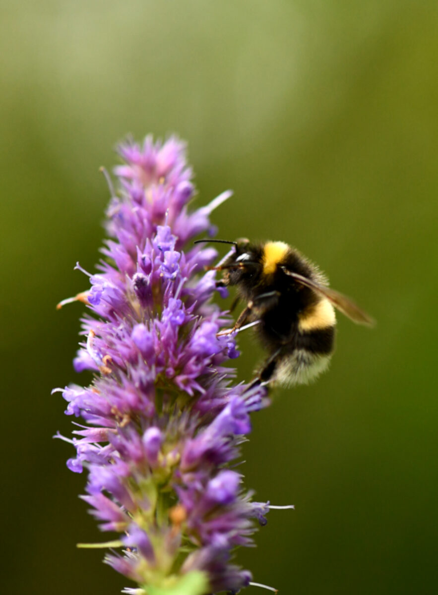 Kiireisen kimalaisen pieni pysähdys hetkeksi elokuisena päivänä.