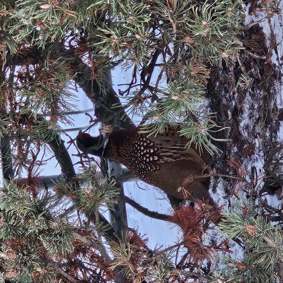 Kirjastoon mennessäni huomasin urosfasaanin olevan huomaamattomana Iisalmen Kirkkopuistossa.