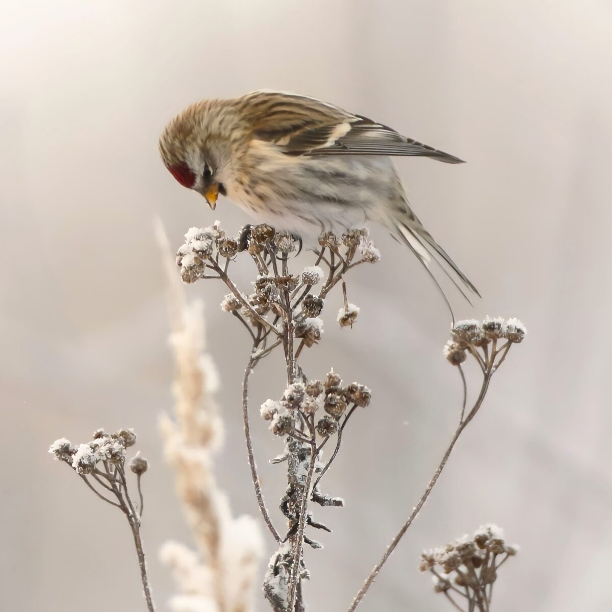 Talven ensipäivien urpiaisparven kuvailua. Päivä oli alakuloisen harmaa, mikä ehkä vähän tarttui kuviinkin.