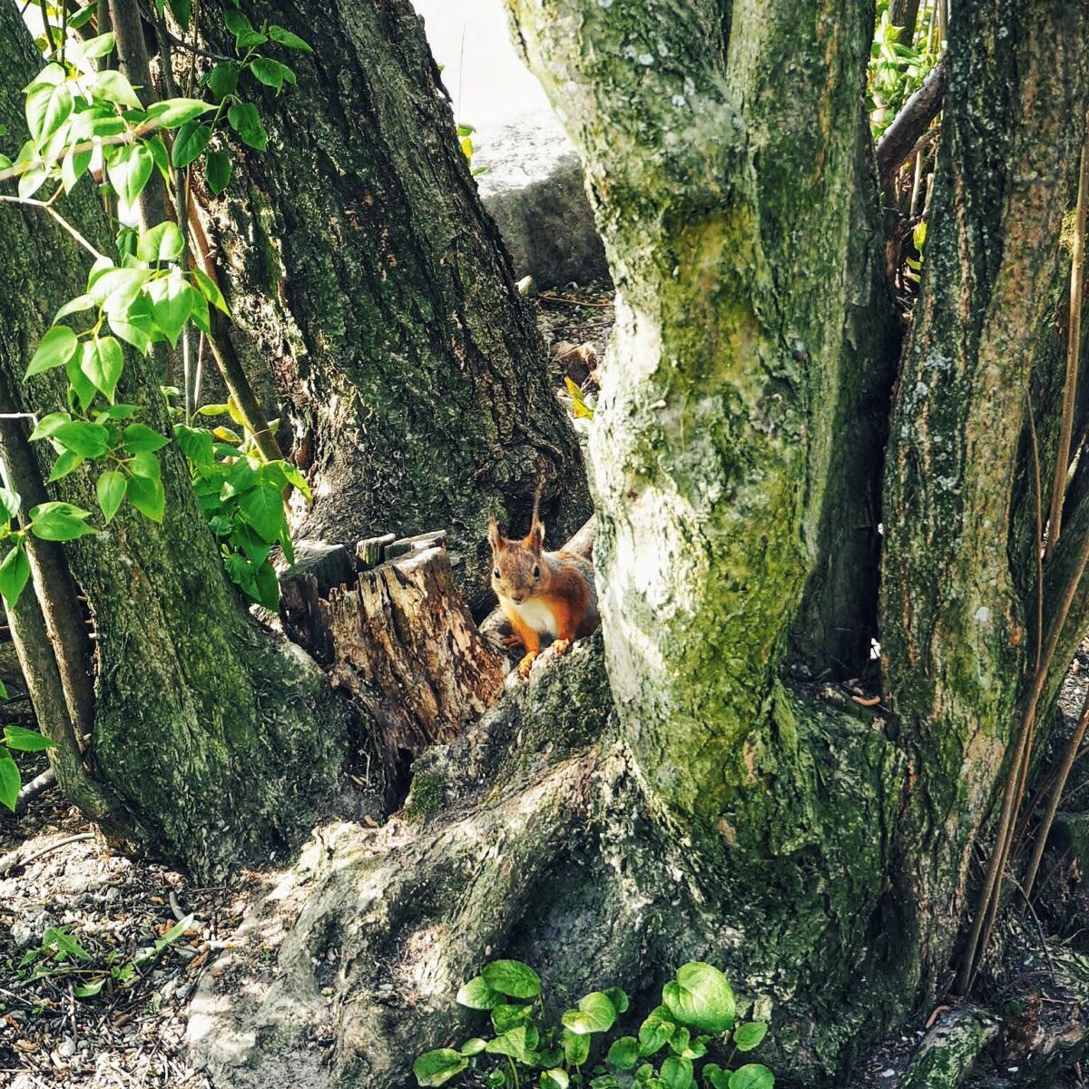 Lähiluonnon utelias orava tuli moikkaamaan.
