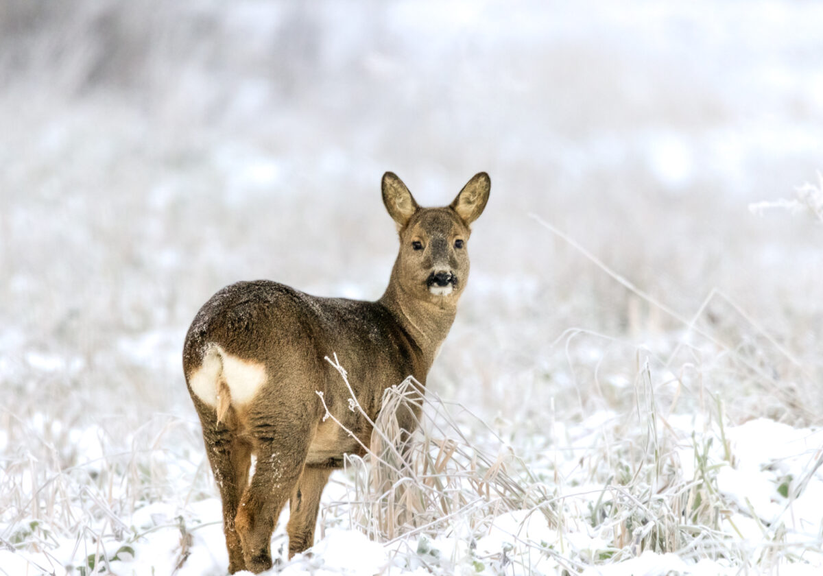 Metsäkauris joka tuli uteliaaksi minusta kuin hiivin lumessa.