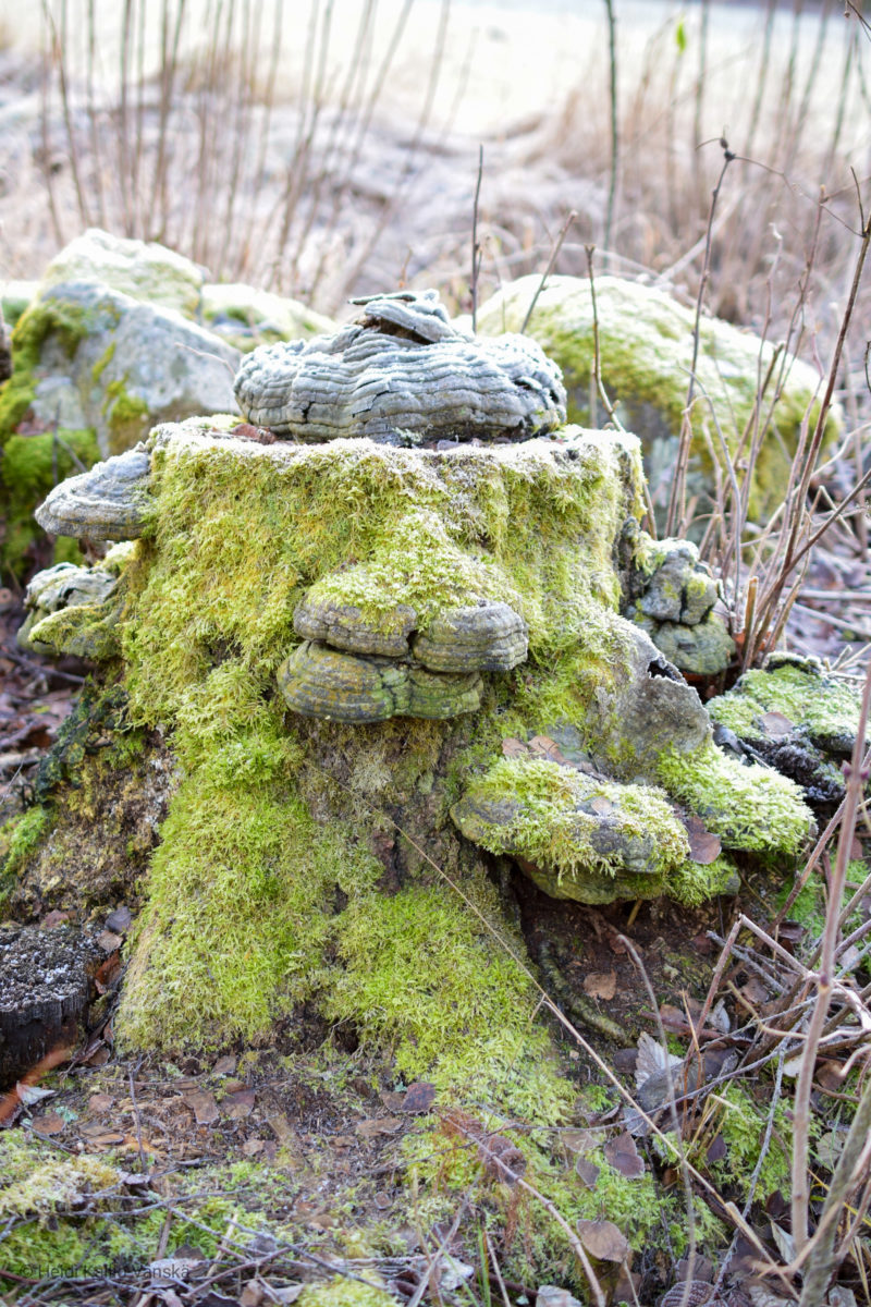 Tämä suuri vanha kanto kantaa ylpeänä uutta elämää. Pysähdyn aina hetkeksi ihailemaan sen vaikuttavaa läsnäoloa, kaikessahiljaisuudessaan se kertoo suurta elämäntarinaansa.