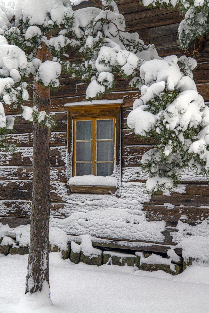 Seurasaaressa sijaitsevan Selkämän talon ikkuna tammikuisessa pakkassäässä.