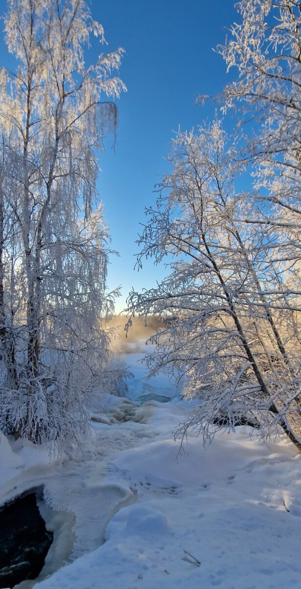 Kuva otettu 1.1.2024 kovassa pakkasessa. Satumainen tunnelma vallitsi koskella.