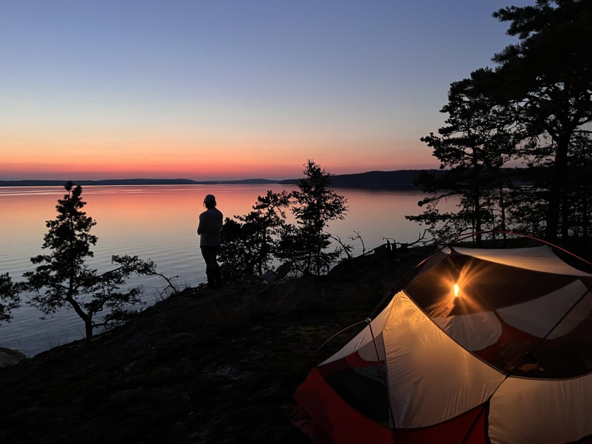 Melontaretkellä yöpyminen saaressa lähes täydellisenä kesäyönä.