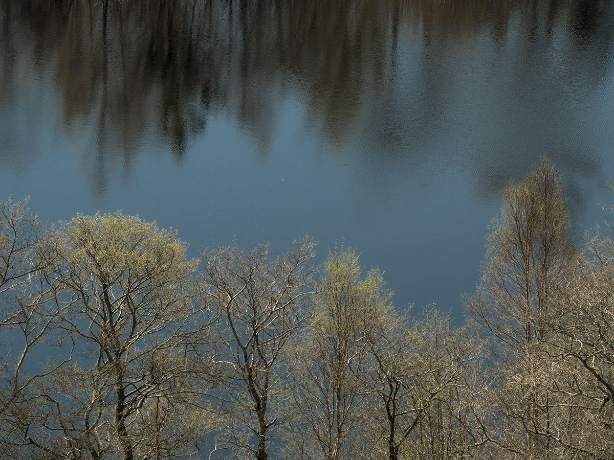 Yö tulee hiipien. Valossa kylpevät puut aavistavat pimeyden läsnäolon. Valon nielevä koura ylettyy jo oikealla laidalla olevaan puuhun. Kuvattu Vallisaaressa.