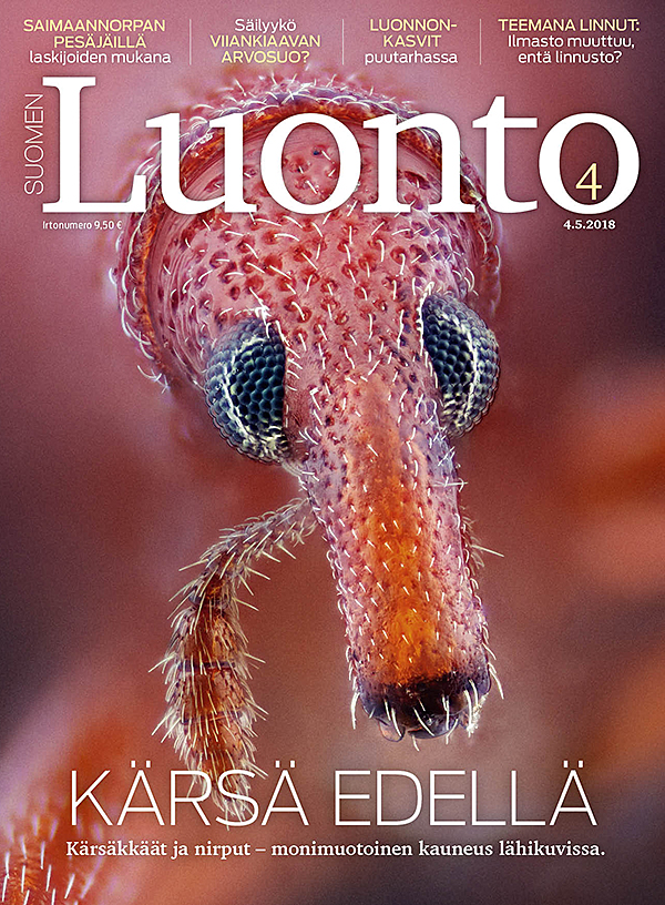 Isopunanirppu (Apion frumentarium) on nimestään huolimatta vain neljä milliä pitkä. Makrokuvat paljastavat näiden pienten koppiaisten kauneuden lehden sivuilla 54–57.