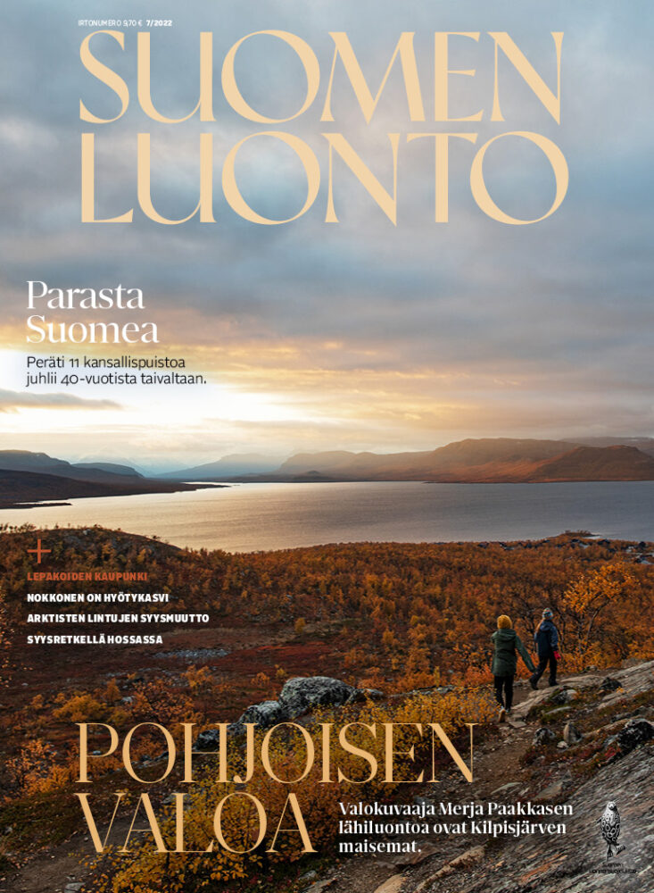ilmestyy 14.9. Tutkimme lepakoita keskellä pääkaupunkia ja selvitämme, mitkä eläimet käyttävät käpyä asuinpaikkanaan. Vierailemme Kilpisjärvellä ja Hossassa sekä esittelemme kaikkiaan 11 tänä vuonna 40 vuotta täyttävää kansallispuistoa. Seuraamme arktisten vesilintujen muuttoa, tutustumme moniin eri tapoihin käyttää nokkosta ja tapaamme kalatutkija Johannes Sahlsténin.