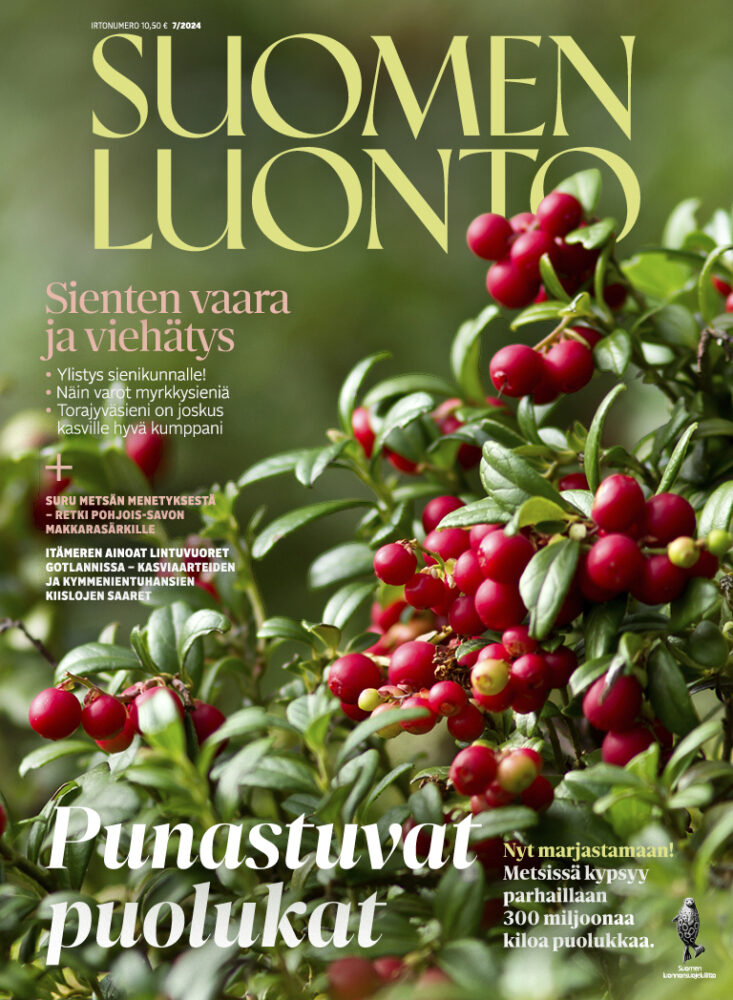 Syksyn ensimmäisen Suomen Luonnon sivuilla on läsnä sienten vaara ja viehätys: myrkkysieniä on syytä välttää, mutta kaikkialta löytyvän sienirihmaston myötä sienet ovat erottamaton osa elämää. Tutkimme tarkemmin myös puolukkaa, joka on Suomen yleisin putkilokasvi ja Arkiluonnon aarteita -sarjassa tutustumme leppäkerttuihin. Kesäkaupungin kaduilla mittaamme ympäristön vaikutuksia lämpötilaan. Kaavin Makkarasärkillä luontokuvaaja kertoo surustaan, kun avohakkuut kolkuttelevat rakkaan luonnon suojelualueen rajoja ja Itämerellä Stora Karlsöllä taas koemme luonnoltaan rikkaan lintusaaren lumon. Lopuksi tapaamme pitkään ilmakehän ilmiöitä tutkineen akateemikko Markku Kulmalan.