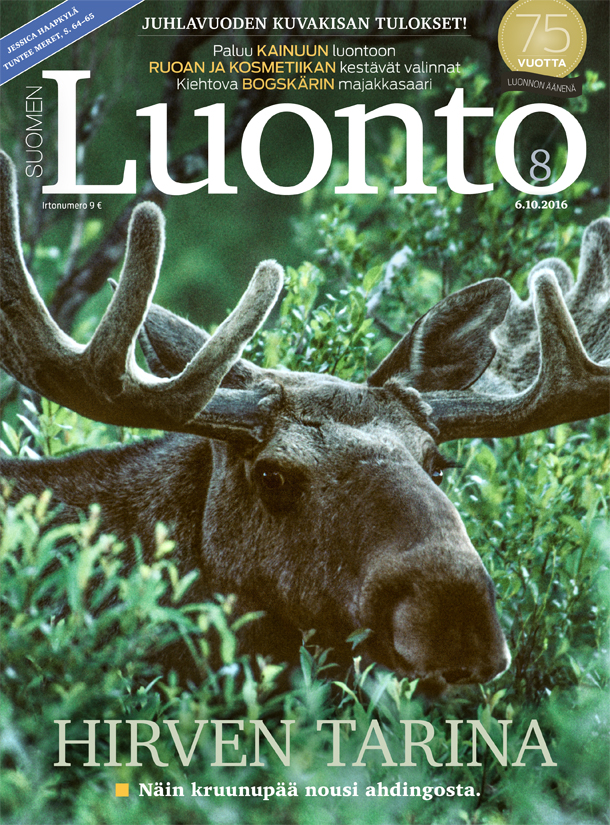 Hirvi on luontomme ylväimpiä eläimiä. Teemme sivuilla 16–25 aikamatkan hirven ja ihmisen jääkauden jälkeiseen Suomeen. Kannen kuvasi Heikki Willamo.