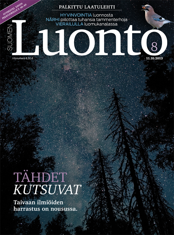 Ilmestyi 11.10. Syystaivaan Linnunradan kuvasi Jorma Luhta. Kertomus taivaan ilmiöiden harrastajista lehden sivuilla 18–26.