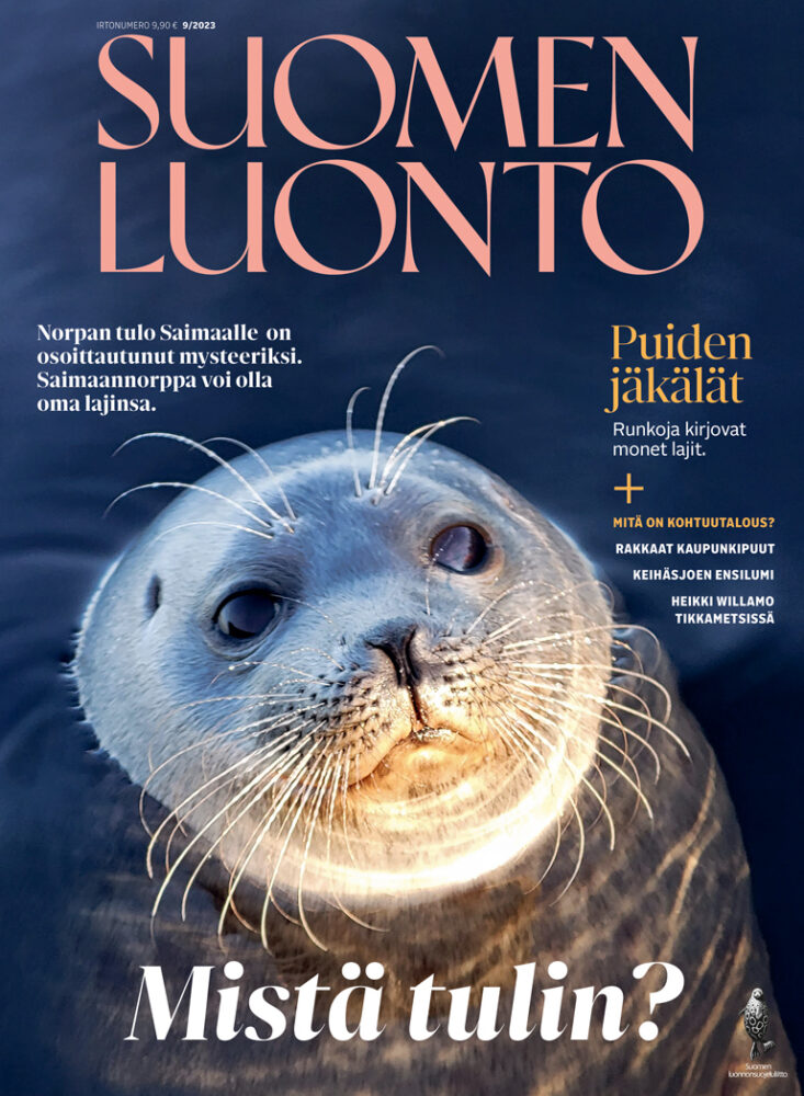 Marraskuisessa numerossa selvitämme, miten norppa on päätynyt Saimaalle ja tutkimme mannerjäätikön liikkeitä. Ihmettelemme kovakuoriaisen tiukkoja elinpaikkavaatimuksia, seuraamme luontokuvaaja Heikki Willamoa tikkametsään ja opimme tuntemaan puiden jäkäliä. Varjelemme tärkeitä kaupunkipuita ja retkeilemme Keihäsjoen luonnonsuojelualueella ensilumen aikaan. Kysymme, miksei jatkuvan talouskasvun tavoittelua kyseenalaisteta ja tapaamme taiteilija Niillas Holmbergin.