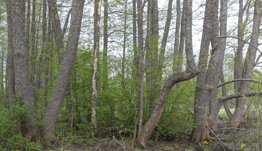 Parikkalassa sijaitsevaa tervaleppäkorpea. Samaa metsää ylimmässä kuvassa.