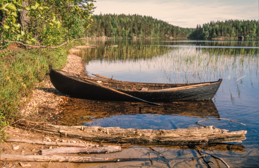 Vanha, hautatervalla vuosittain tervattu soutuvene, Repoveden erämaa. Kuva: Samuli Haapasalo