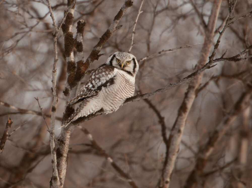 Hiiripöllö on paljon liikkeellä päiväsaikaankin