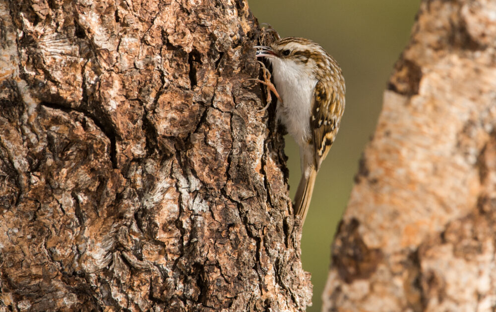 Puukiipijä on ihan omanlaisensa, myös sen pönttö, joka on kaksiseinäinen puun runkoa vasten.