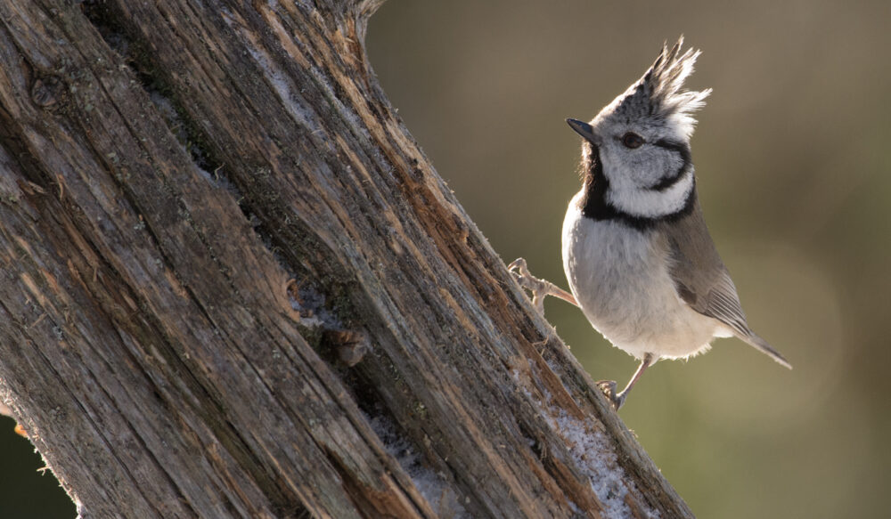 Töyhtötiainen, aito metsän paikkalintu, pesii puun koloissa ja myös pöntöissä,