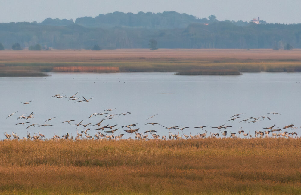 Viron Läänemaalla kurki on renkaan kontrollivuonna 2013 – ehkä monenakin syksynä – saattanut yöpyä joko Põgarin lahden tai Matsalunlahden luodoilla, nisäkkäilta hyvässä suojassa. Tämä kuva Matsalunlahden Haeskan tornilta.