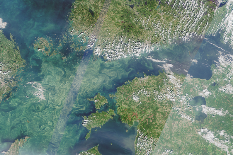 Sinilevät kukkivat Itämerellä loppukesällä. Laajat kukinnat syntyvät silloin, kun on lämmintä ja vedessä on paljon fosforia. Sinilevät, eli sinibakteerit, tarvitsevat myös typpeä, mutta toisin kuin muut levät, ne ottavat sitä suoraan ilmasta. Ainoastaan fosfori siis rajoittaa sinilevien runsautta.