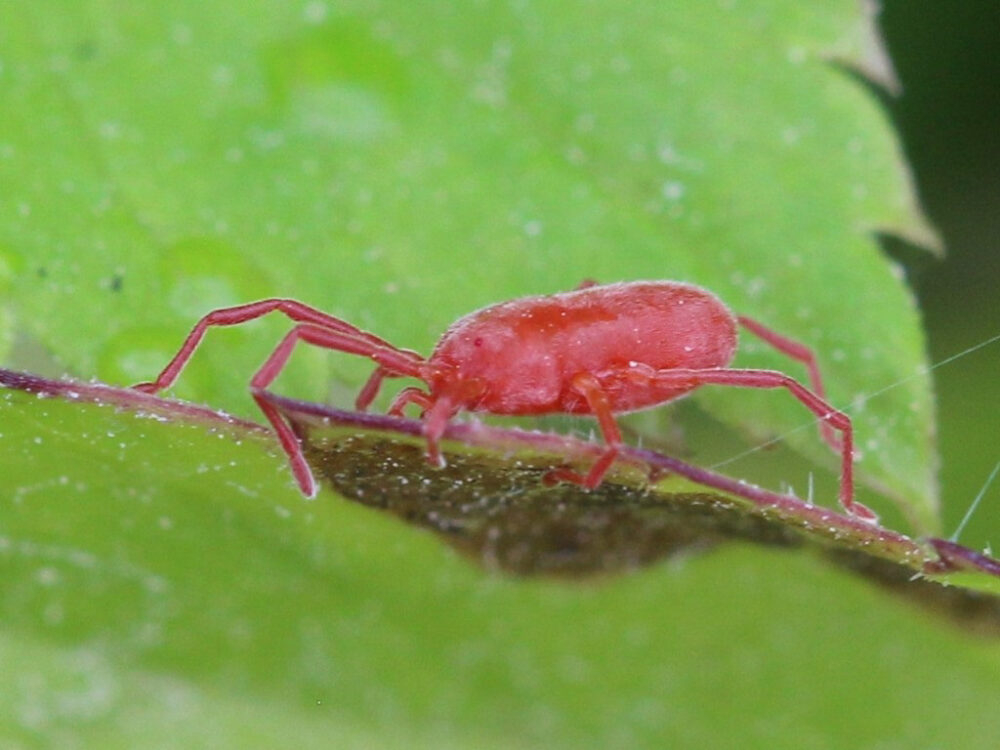 Punkkien Erythraeus-suku tunnetaan pitkäkoipisista lajeista. Kuvan punkki kuuluu samaan sukuun kysyjän löytämän punkin kanssa. Kuva: Aleksandrs Balodis / Wikimedia Commons (CC BY-SA 4.0)