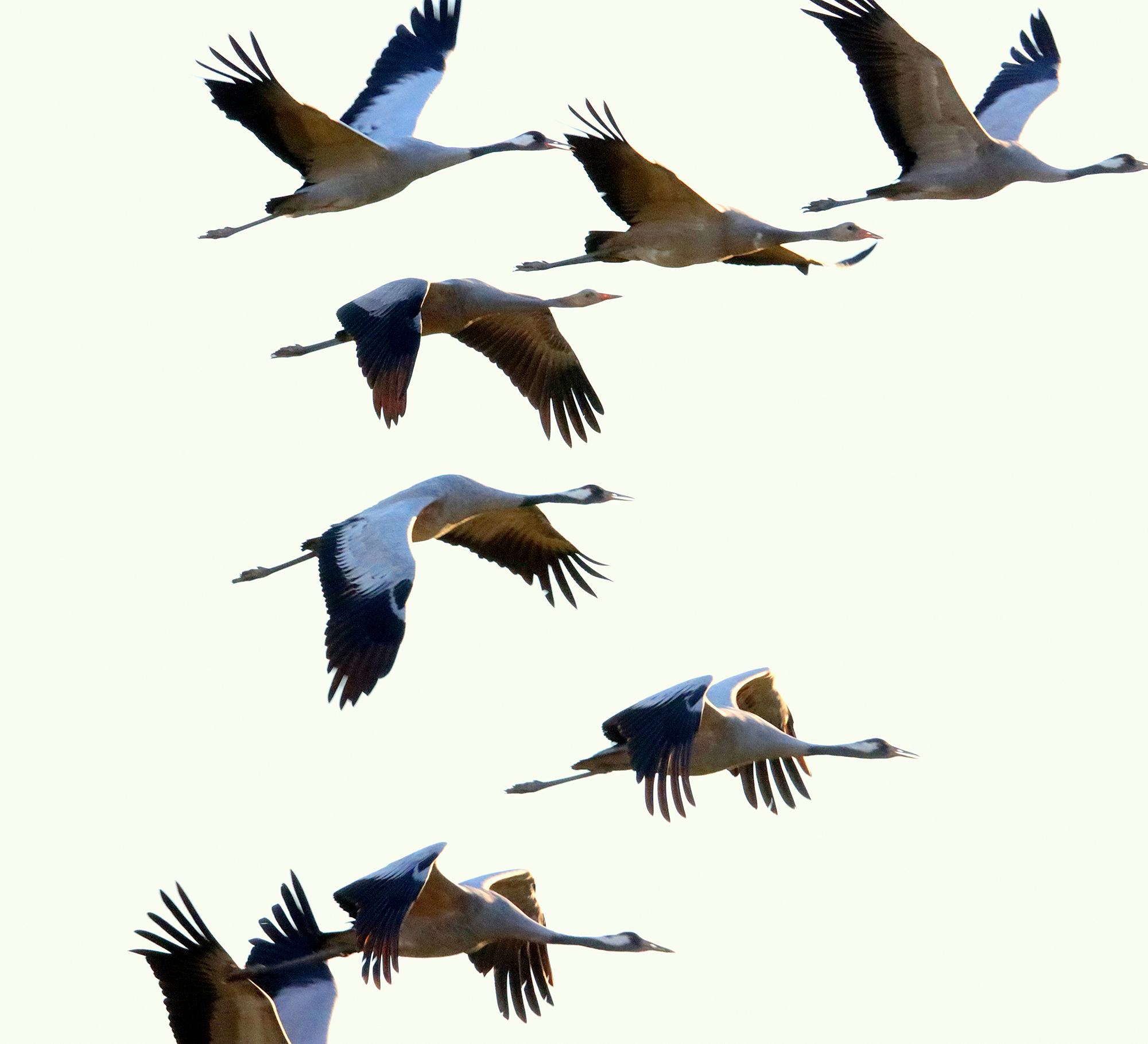 Kurjet näyttävät lähtevän matkaan useassa erässä. Tämä parvi oli ruokaillut sänkipellolla.