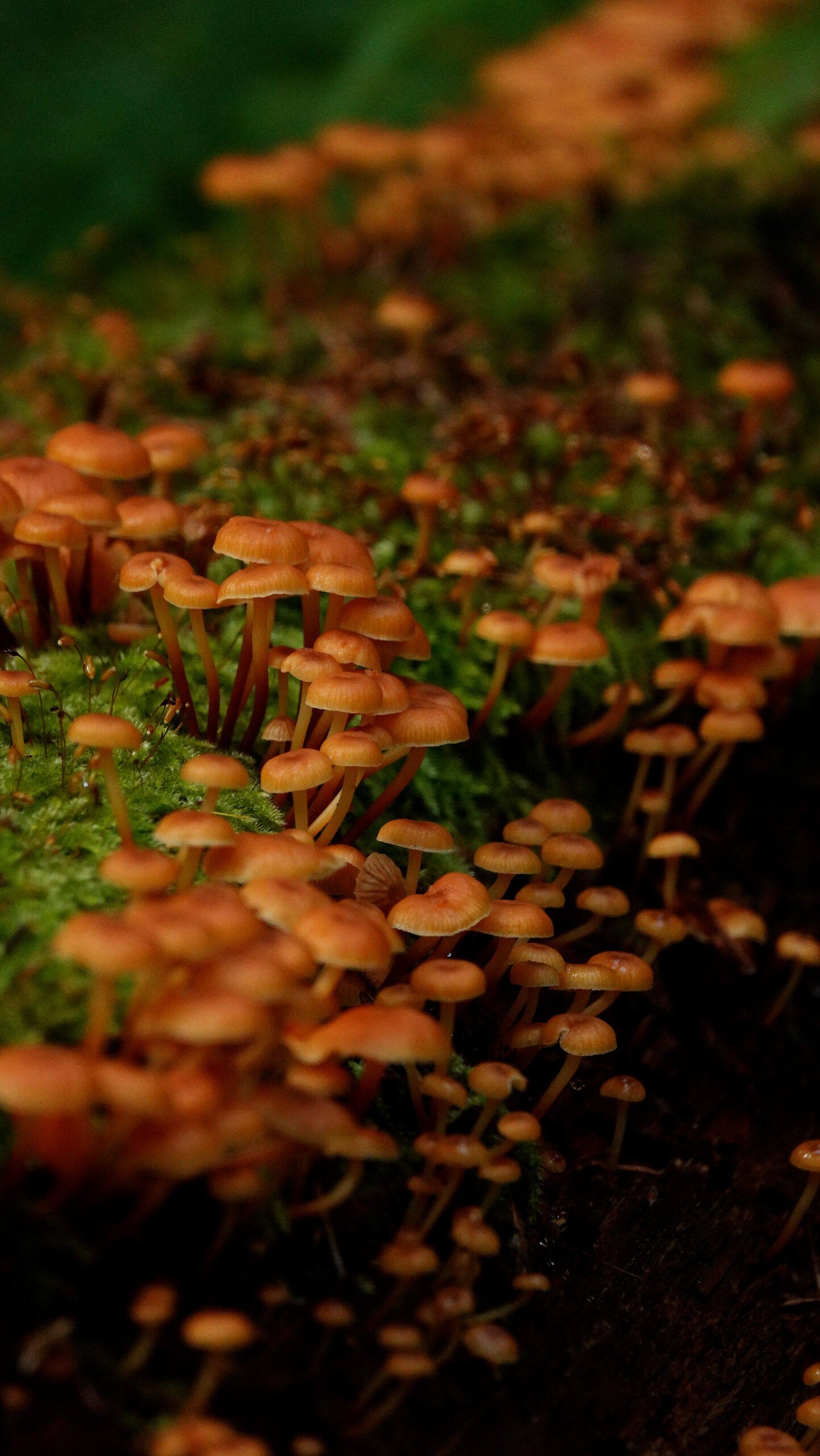 Kuvassa osa lahoavalla puunrungolla kasvaneista sienistä. Sieniä oli rungolla melkoinen määrä. Lajilla on hauska nimi, kantonapanahikas.