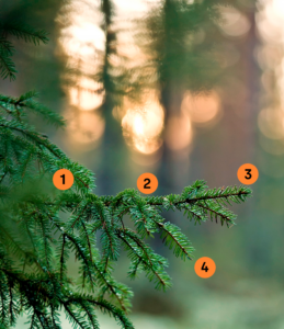 1. Kuusi ei pudota neulasiaan talveksi. Vaha peittää neulasten ilmaraot talvella ja estää veden haihtumisen.