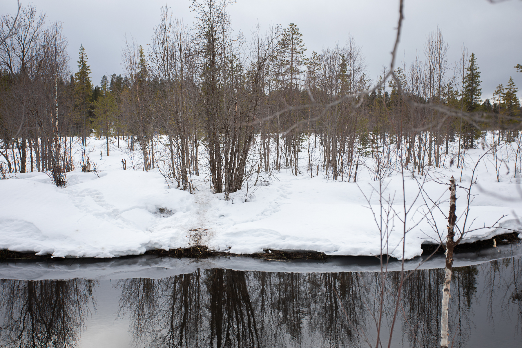 Vapaa on vain umpihanki, runoilija Aaro Hellaakosken tunnetut sanat pulpahtavat mieleeni. Kaavailemme verkkotuottaja Annakaisa Vänttisen kanssa retkeä Äkäslompolon Kesänkijoen varteen ihailemaan mutkittelevaa virtaa ja sen elämää. Aikeenamme on kulkea jokea myötäillen ylävirtaan kohti Kesänkijärveä ja poiketa latukahvila Kesängin keitaalle järven toisessa päässä.