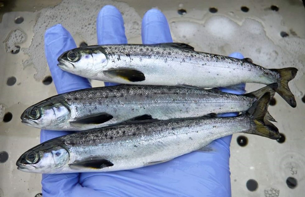Tornionjoen lohen vaelluspoikasia eli smoltteja. Nukutuksen jälkeen ne vapautettiin vahingoittumattomina takaisin jokeen. Kuva: Ville Vähä, Luke