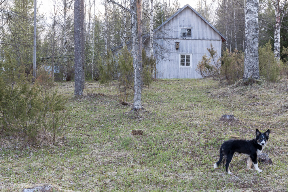 Kuva on otettu pihaltamme toukokuun 23. päivä. Lumet ovat lähteneet, mutta maa ei ole vielä paljon vihertynyt. Talon päädyssä olevassa pöntössä pesii telkkä.