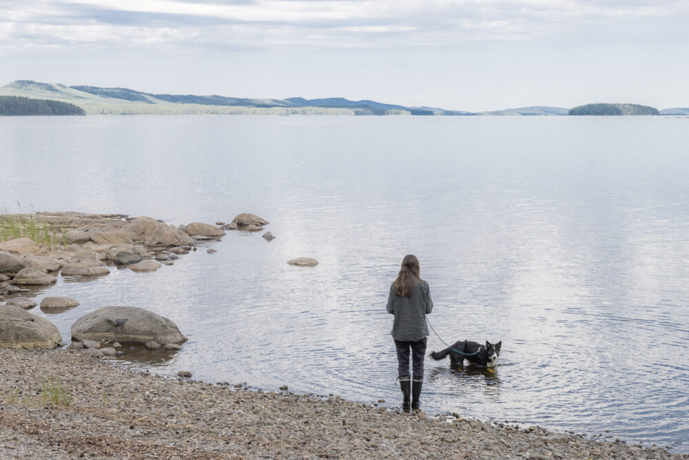 Kesällä teimme kaksi retkeä Etelä-Karjalaan Parikkalaan, ja tässä ollaan sinne matkalla, Lieksassa Pohjois-Karjalan puolella. Vekku vilvoittelee Pielisen rannalla, taustalla näkyy Kolin siluetti.